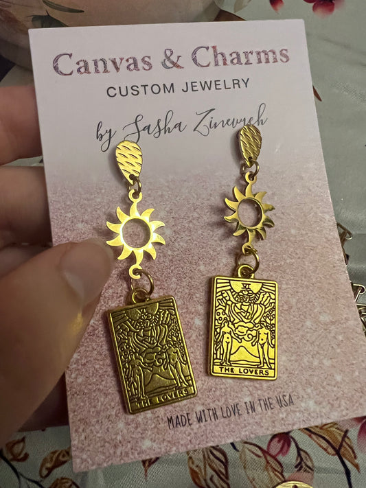 The Lovers Tarot Card Earrings in Gold