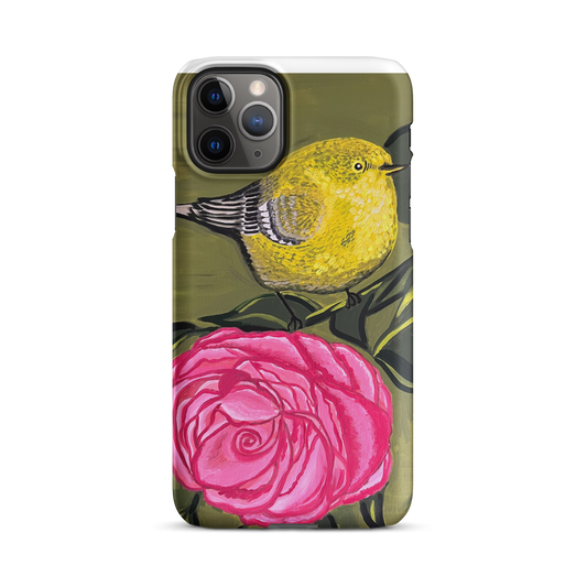Chubby Warbler on a Rose Art Snap case for iPhone®