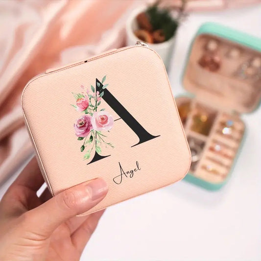 Personalized Travel Jewelry Box with Monogram and Flower Design Gift for Her