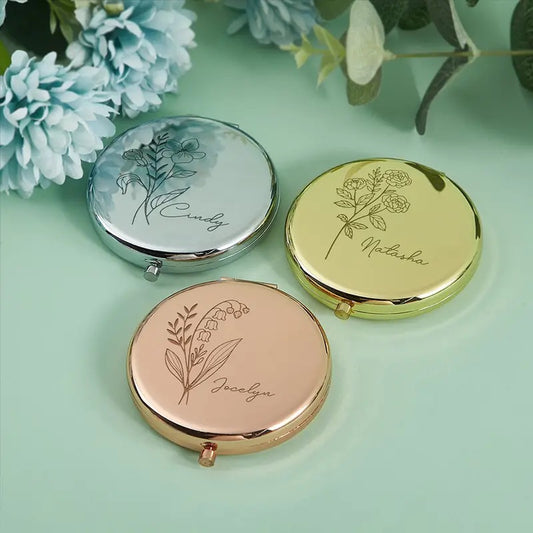 Personalized Makeup Mirror with Name and Birthday Flower Birthday Gift For Her