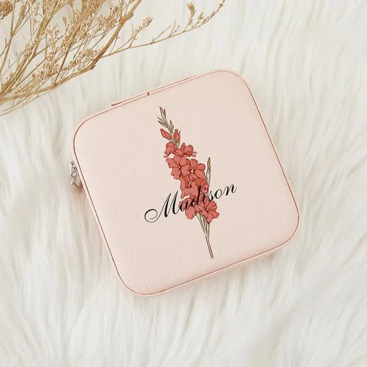 Personalized Travel Jewelry Box with Name Monogram and Birth Flower
