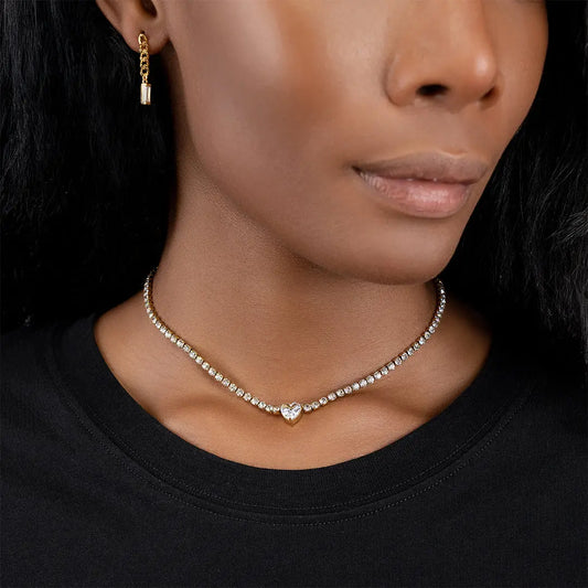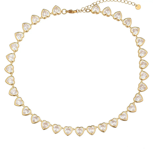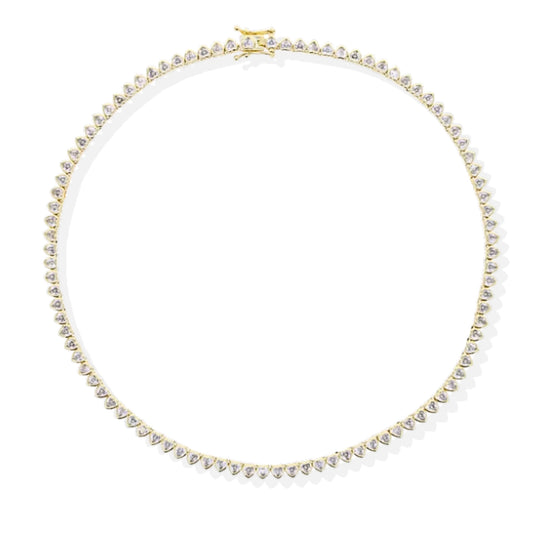 Crystal Heart Tennis Chain Necklace 14K Gold Water Resistant