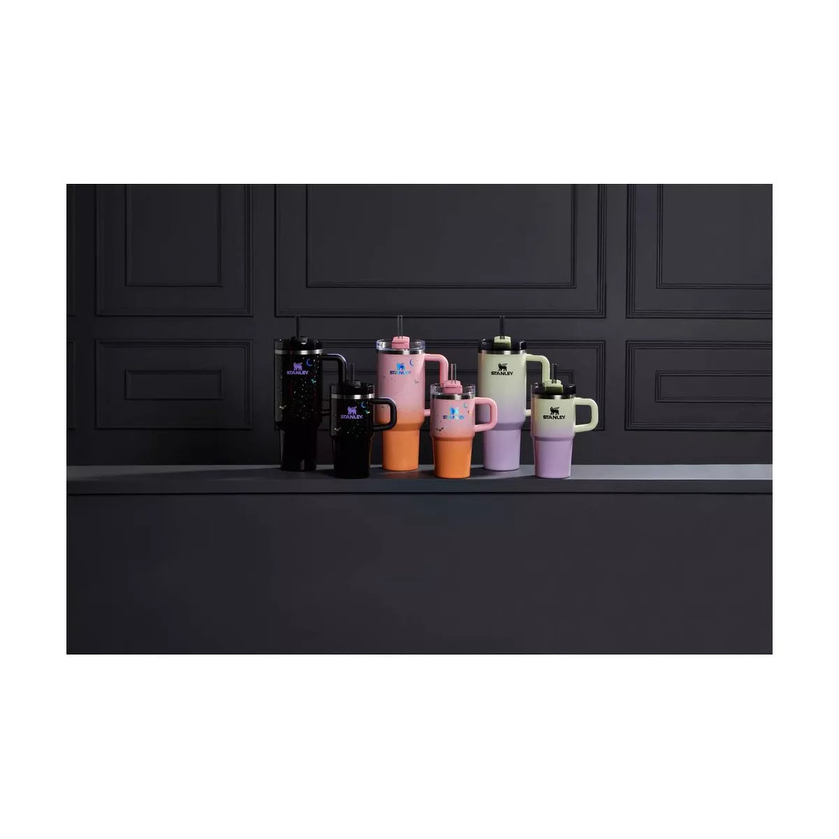 Stay hydrated this spooky season with the Stanley Halloween 40 oz Stainless Steel H2.0 Flowstate Quencher Tumbler! Choose your magic vibe with spellcast black (glows in the dark), spellcast pink (multicolor metal undertone and bats), or hypnotic green (gradient). This durable tumbler keeps your drinks hot or cold for hours while adding a touch of Halloween charm to your day. Perfect for witches, wizards, and hydration enthusiasts alike!